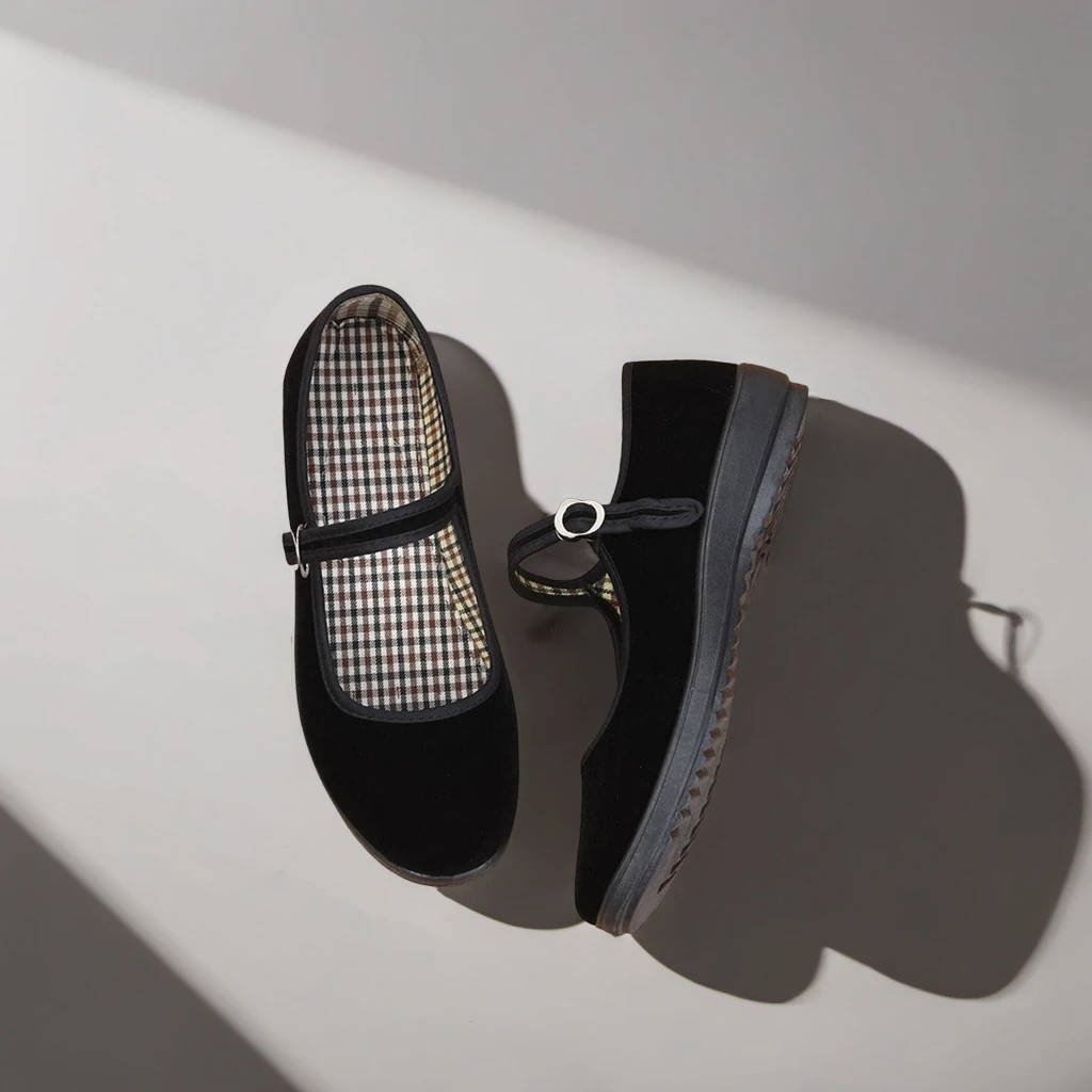 Elegant Velvet Mary Janes for Women, Adjustable Strap & Sturdy Sole